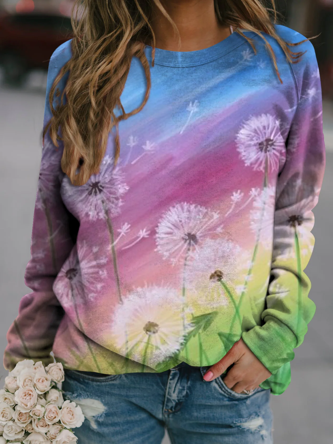 Dandelions Sweatshirts Natural Landscape Painting 3D Print Women's Casual Raglan Long Harajuku Tops Female Clothing