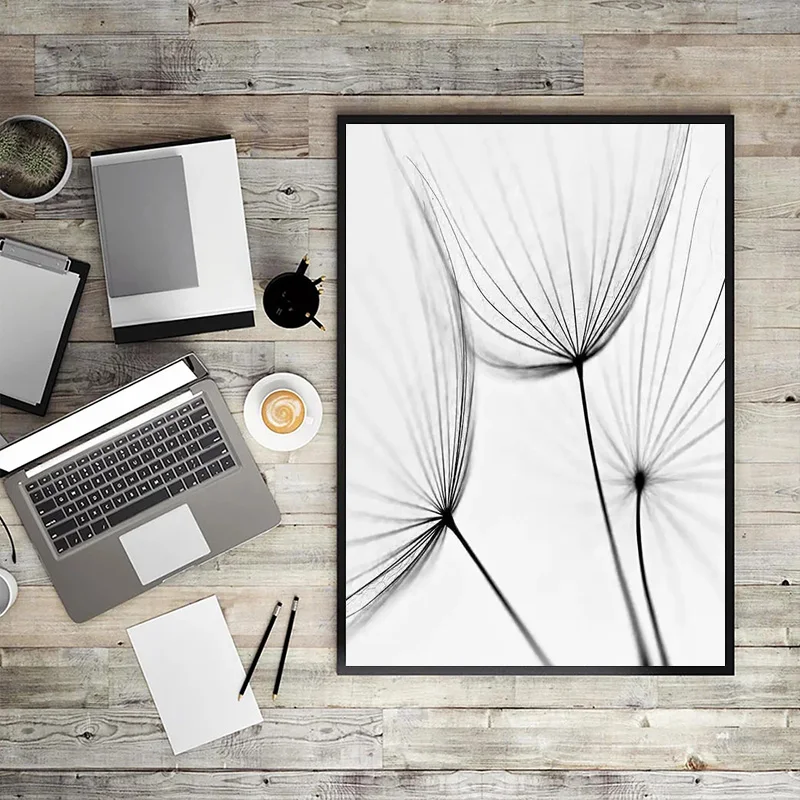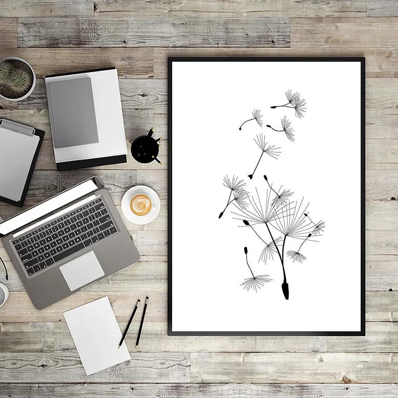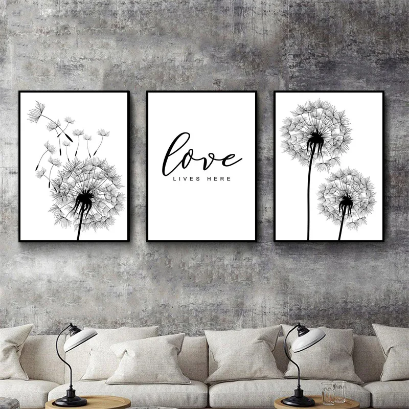 Nordic Minimalist Black And White Dandelion Modern Canvas Prints Wall Art Picture For Living Room Home Decor
