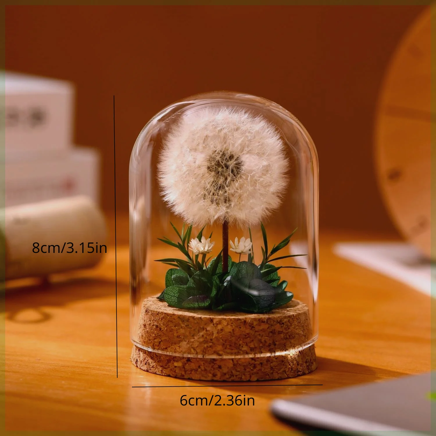 Preserved Flower Dandelion Dried Flower Specimen Glass Cover Home Decor A Gift for Friend Mom