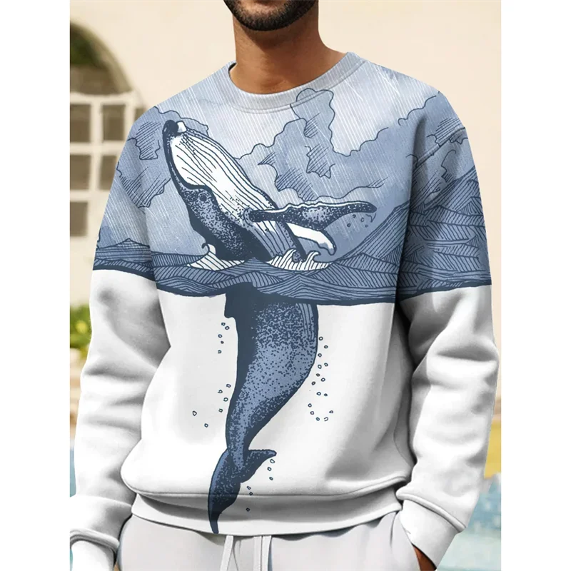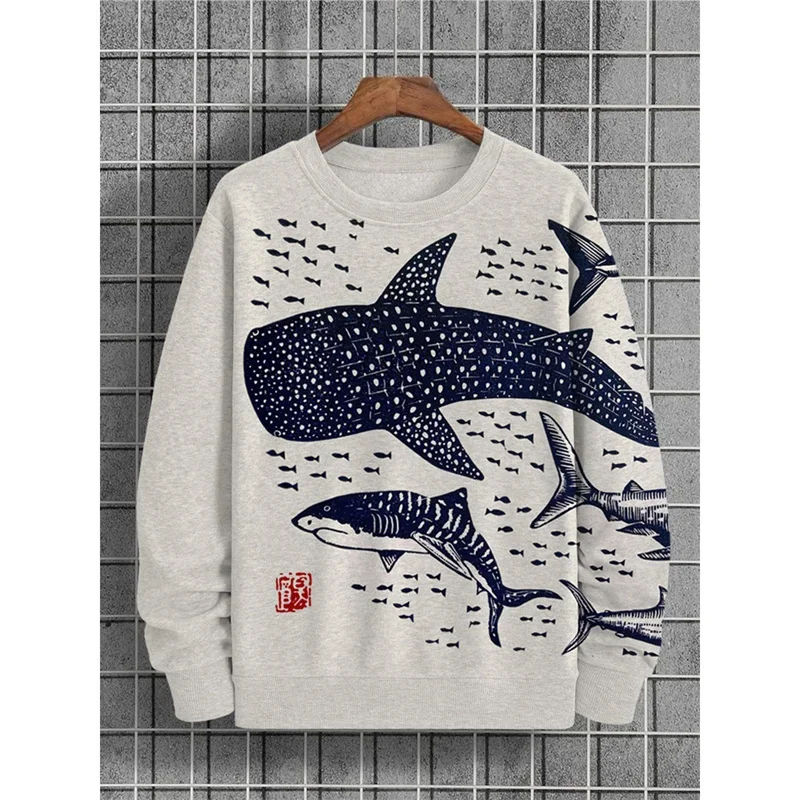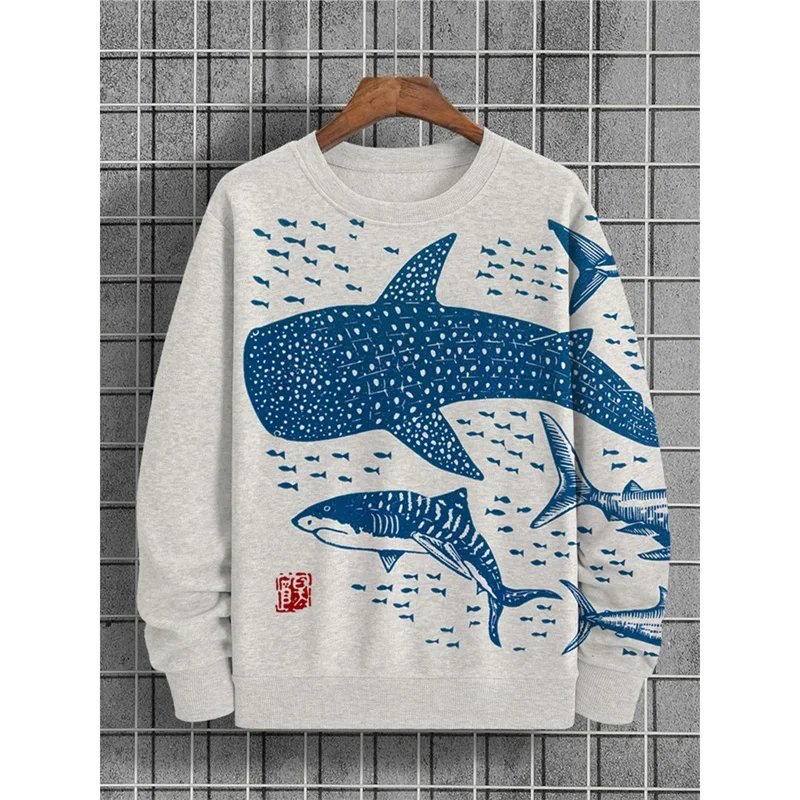 3D Printed Shark Hoodie For Men Marine Sweatshirt Loose Long Sleeves