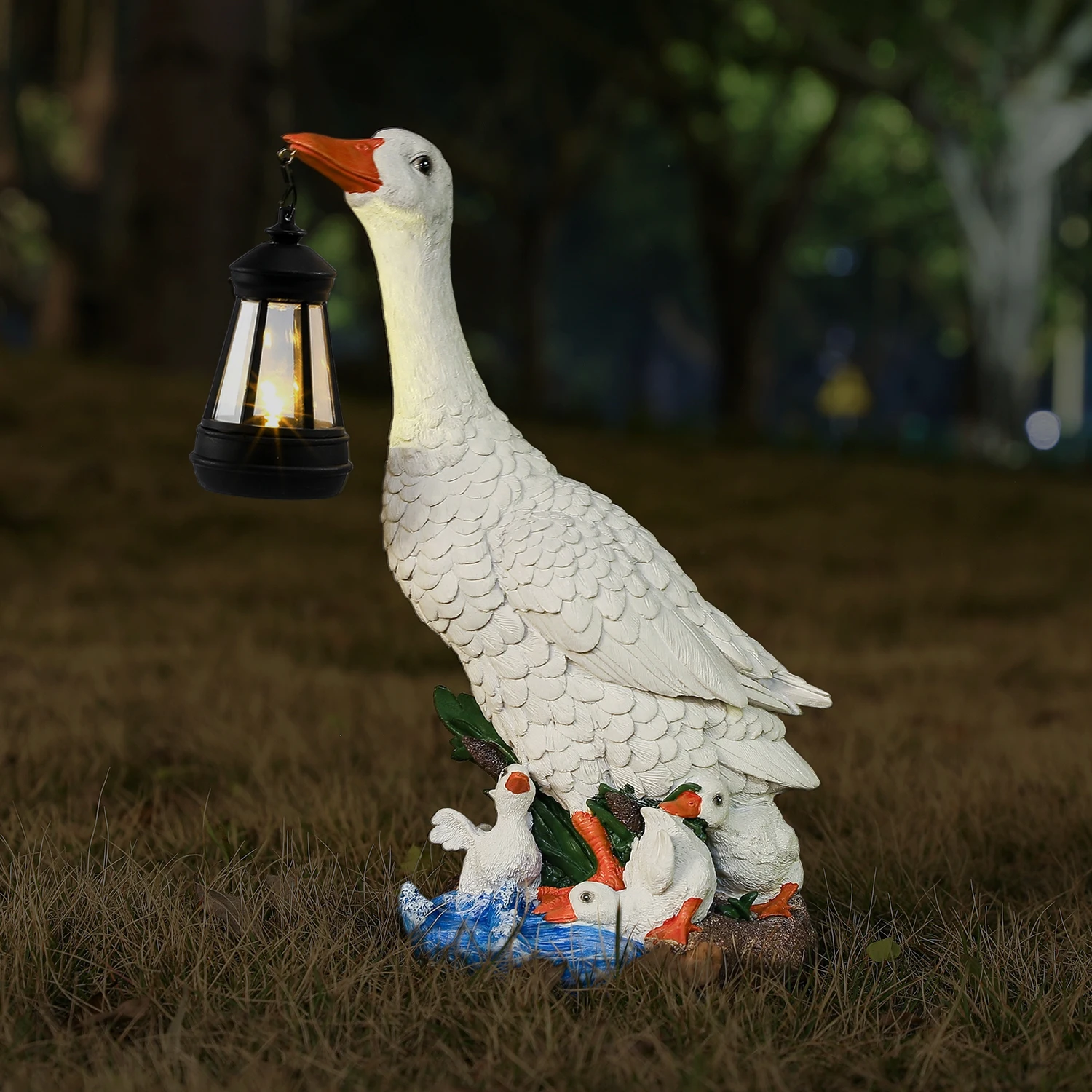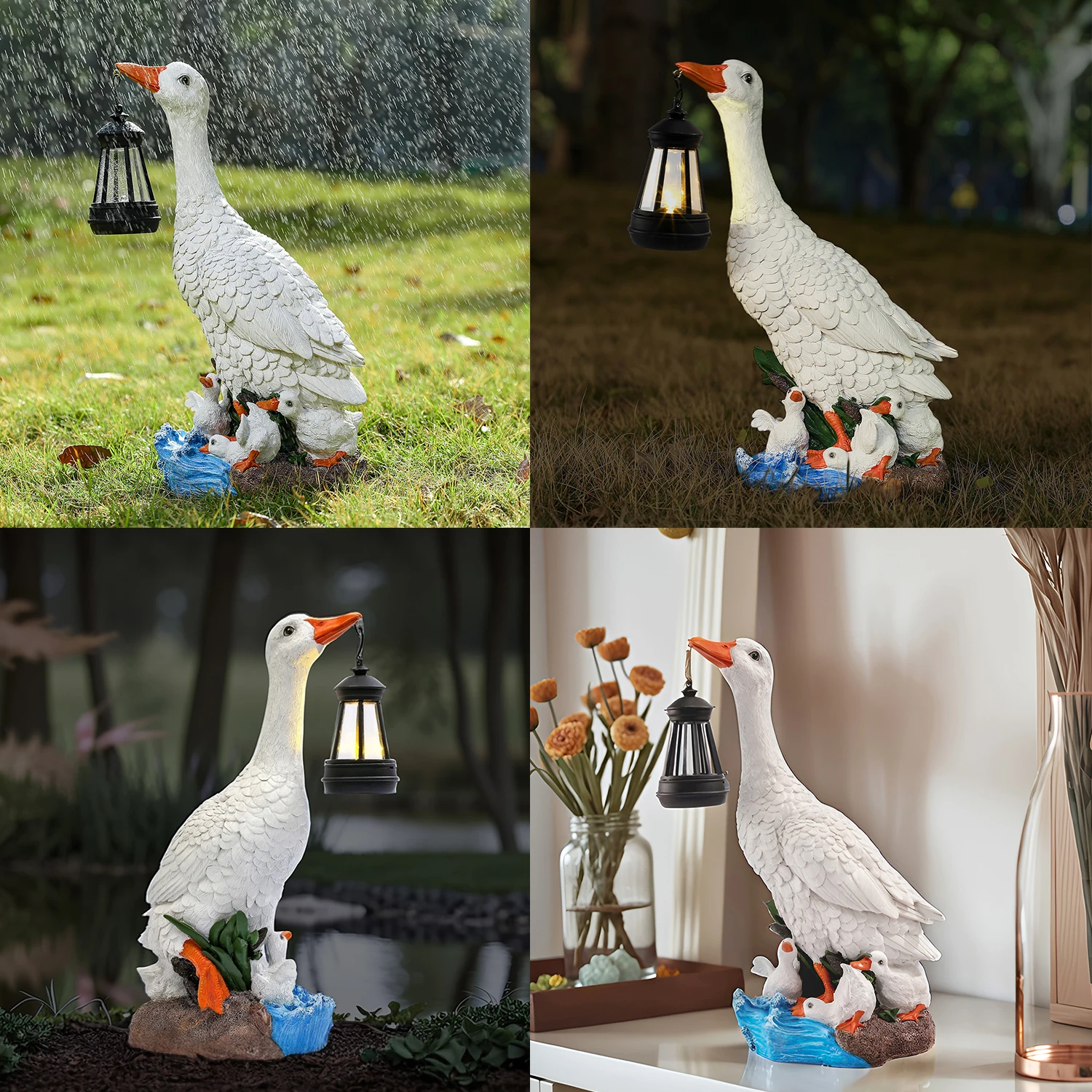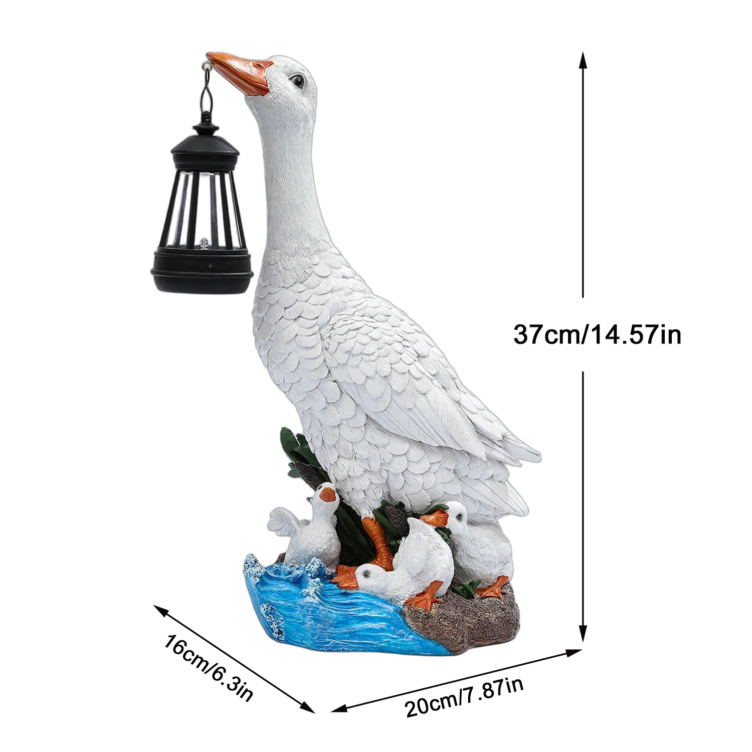 14 inches Figurine Porch Duck Statue , Solar Outdoor Sculpture Decor Duck Mother duck and ducklings Goose, Big Resin Garden Lawn Yard Garden Decor,Gift for Mom