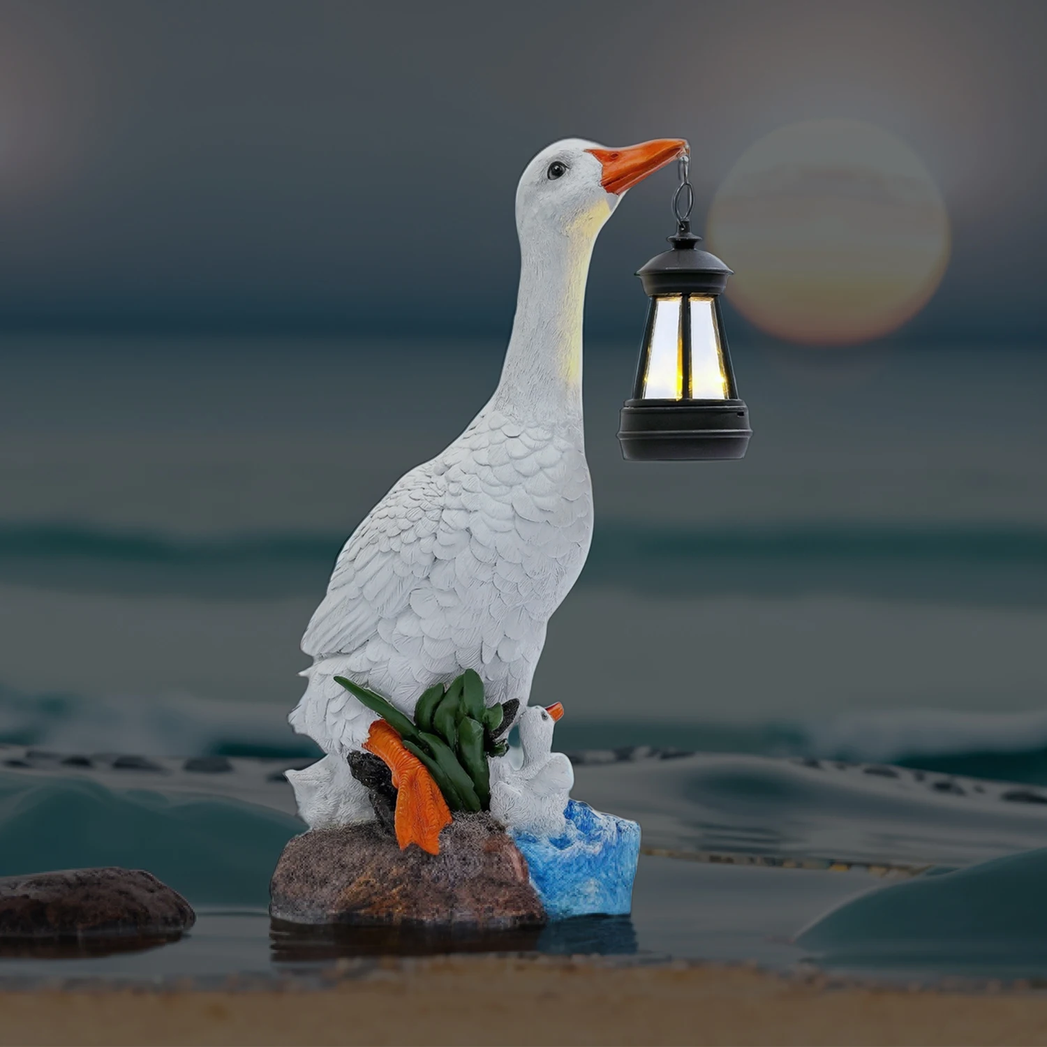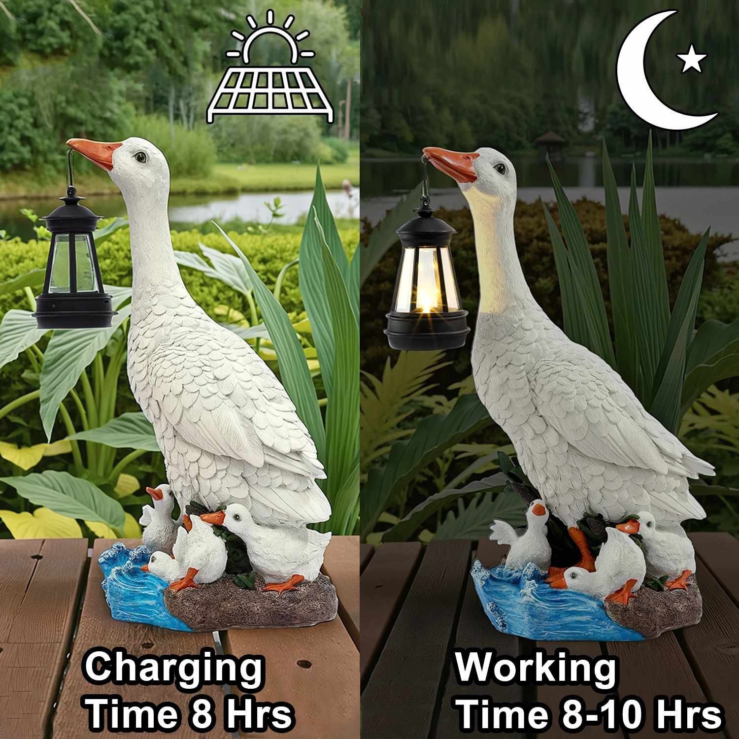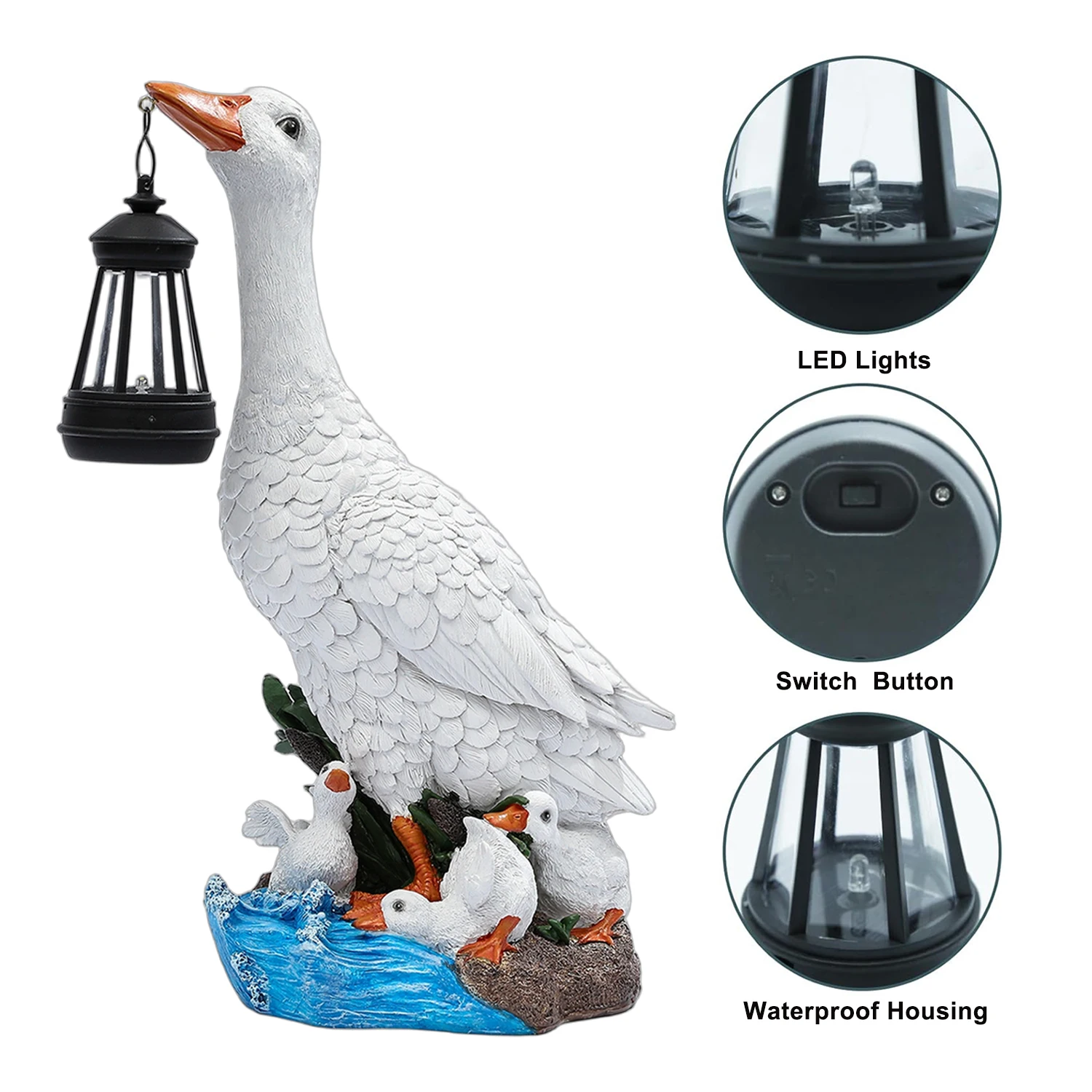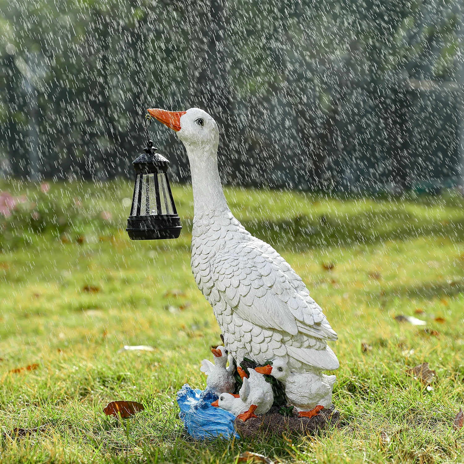 14 inches Figurine Porch Duck Statue , Solar Outdoor Sculpture Decor Duck Mother duck and ducklings Goose, Big Resin Garden Lawn Yard Garden Decor,Gift for Mom