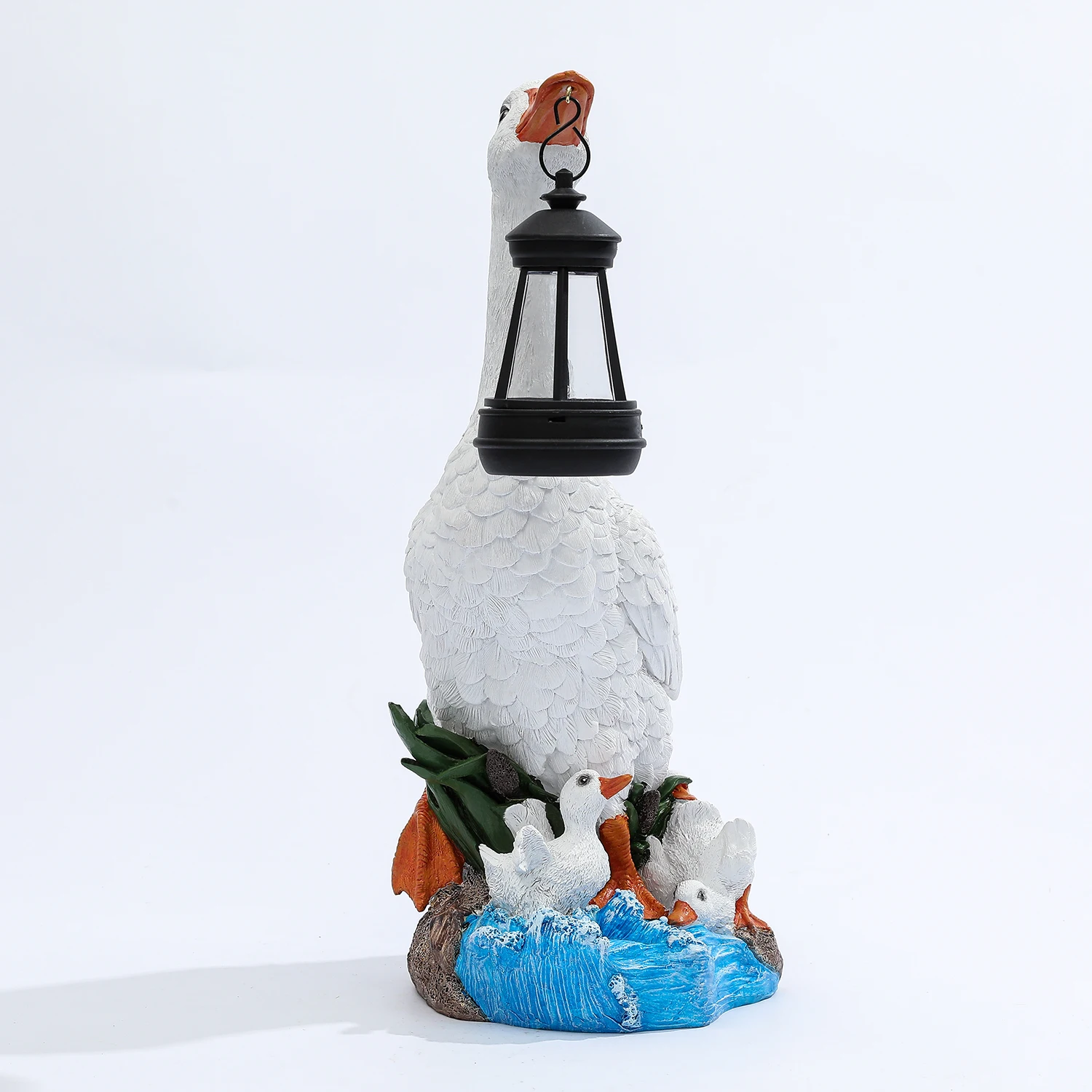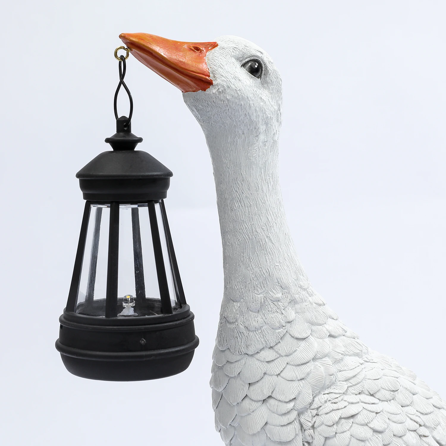 14 inches Figurine Porch Goose Statue Solar Outdoor Sculpture Decor Goose Garden Lawn Decorations