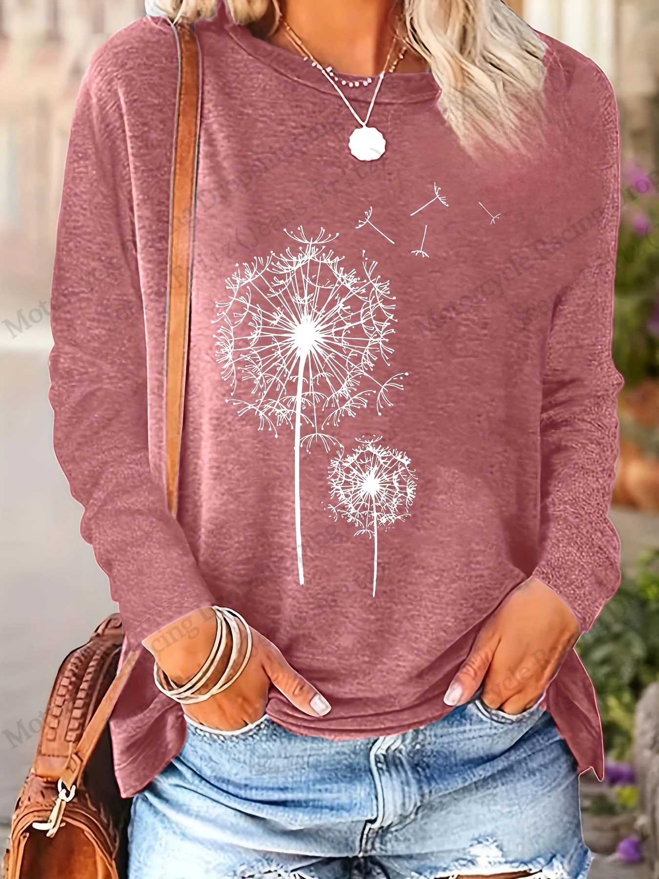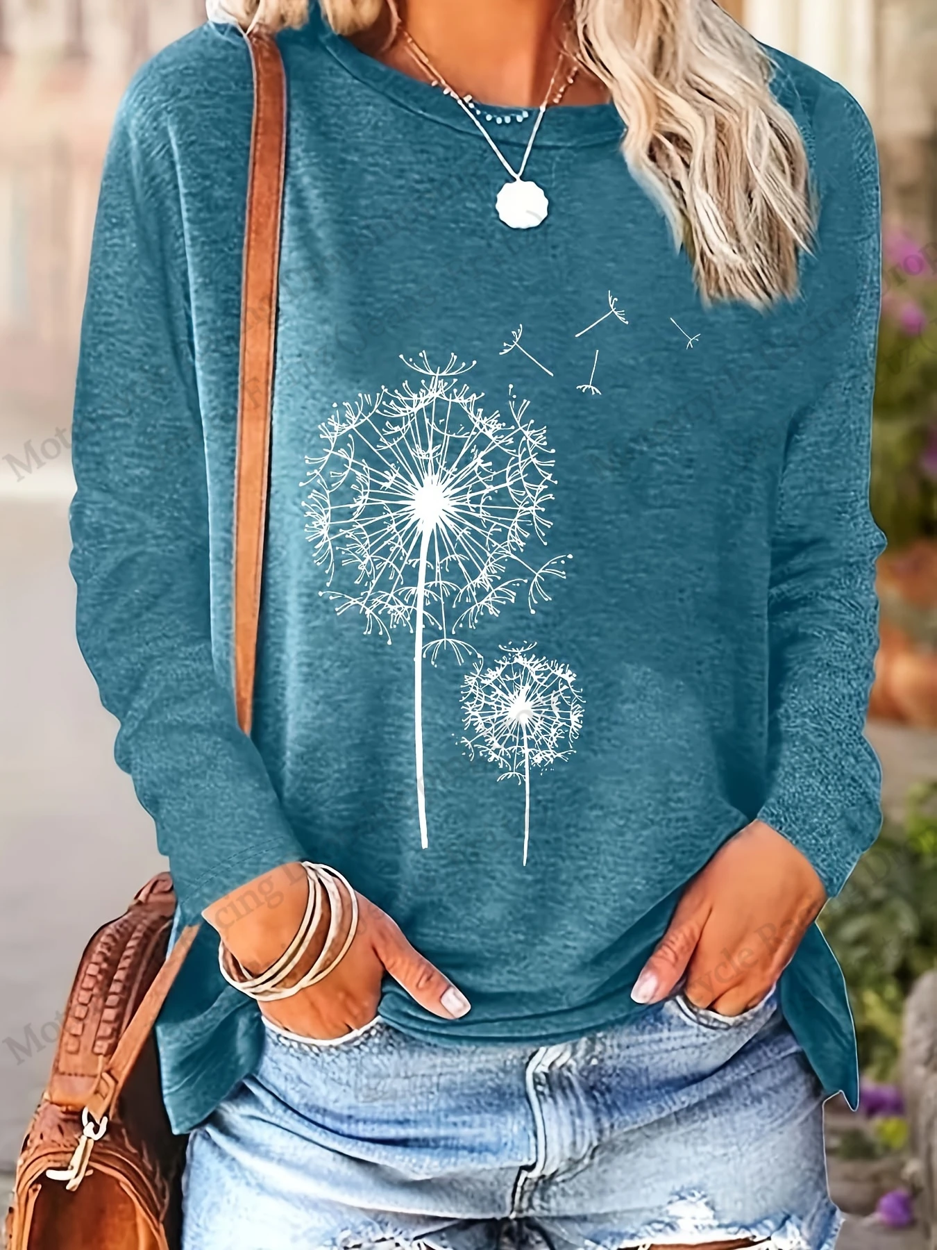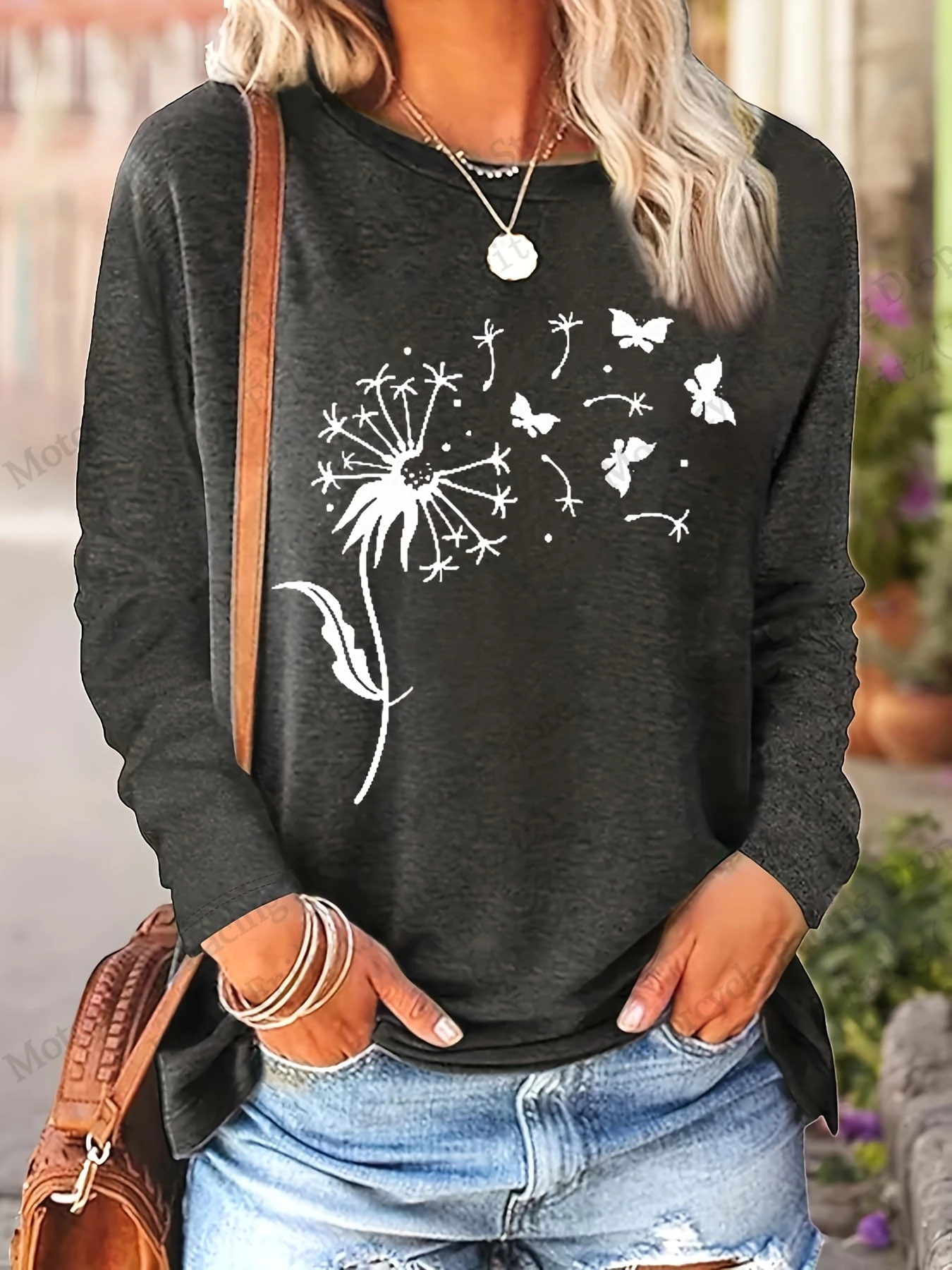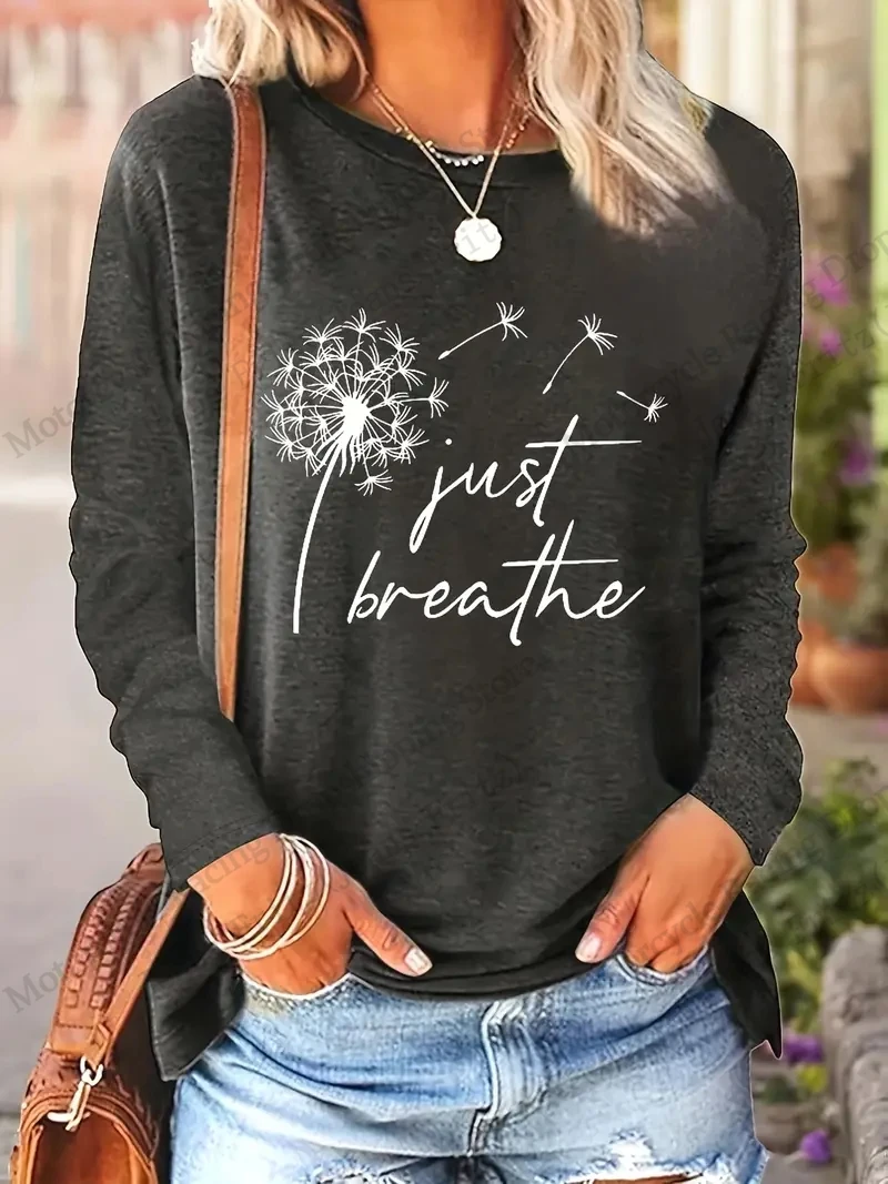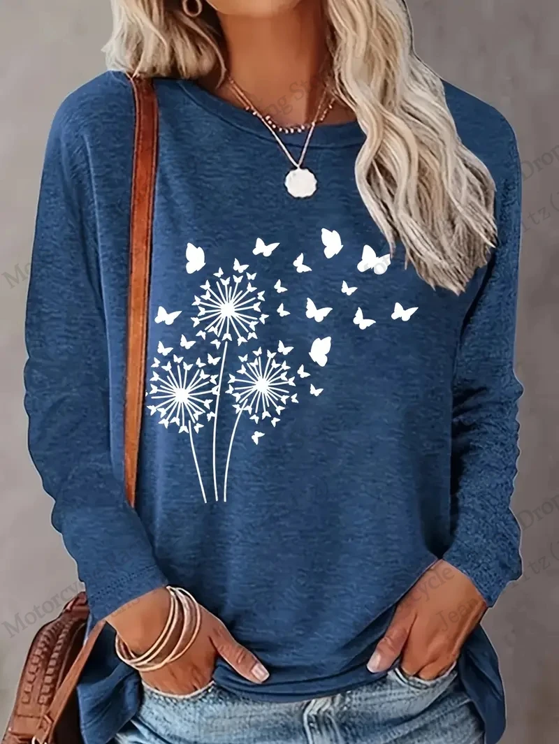 Womens Floral Dandelion 3D Print Long Sleeve T-shirt Women Fashion Casual Oversized Women Clothes Vintage Tops Tees New